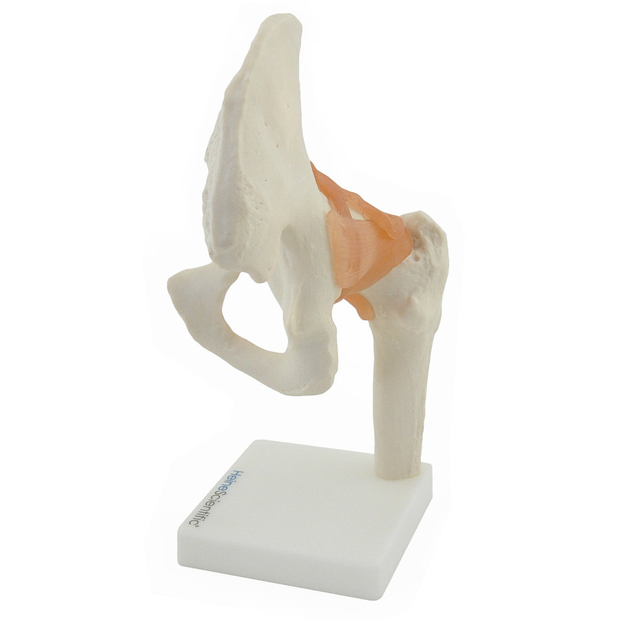 Dieses Skelettmodell zeigt das menschliche Hüftgelenk mit den Gelenkbändern.