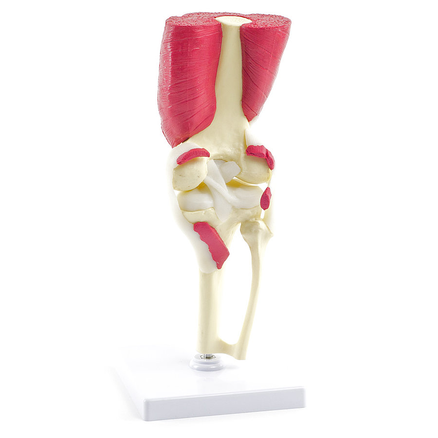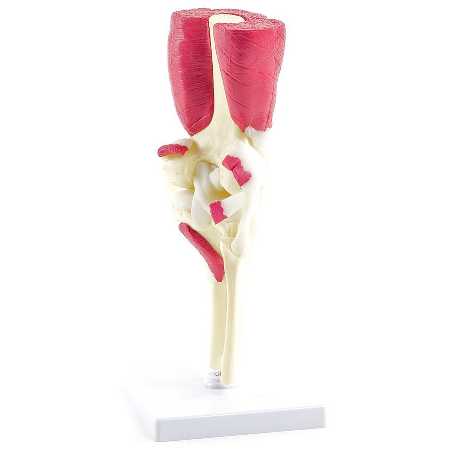 Mit Hilfe des Kniegelenk-Modells können alle wichtigen Strukturen rund um das menschliche Kniegelenk betrachtet werden. Femur, Tibia, Fibula, Patella und alle umliegenden Bänder, Muskeln und Sehnen sind detailgetreu dargestellt.