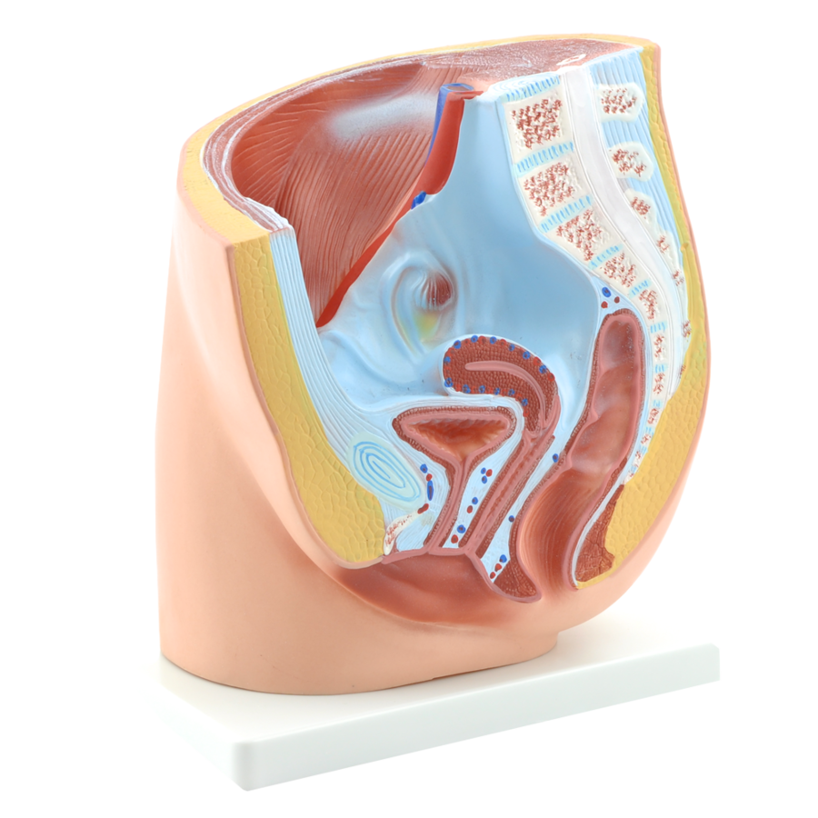 Das Beckenmodell von HeineScientific zeigt den Längsschnitt durch das Becken einer erwachsenen Frau. Zur besseren Unterscheidung sind die Strukturen beim weiblichen Beckenmodell unterschiedlich eingefärbt. Trotz der hohen Detailtreue ist das anatomische Beckenmodell sehr übersichtlich und eignet sich hervorragend als Lehrmodell.