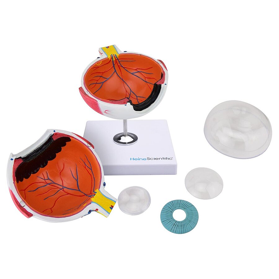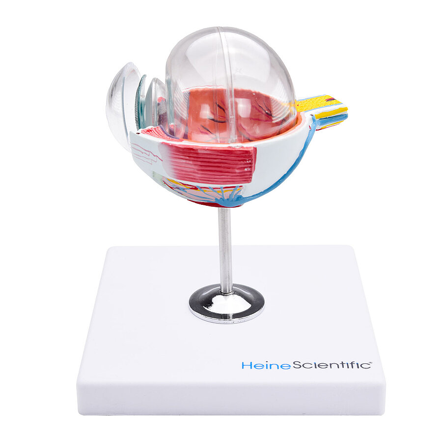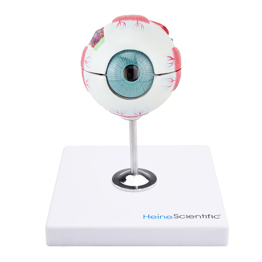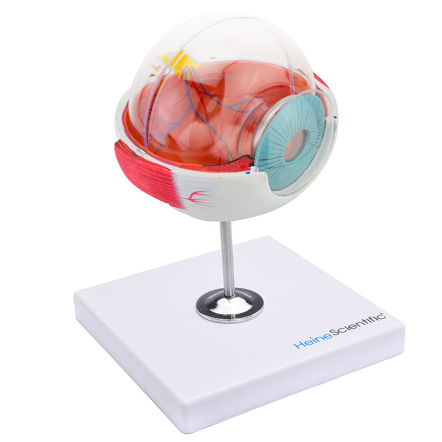 Dieses anatomische Modell zeigt das menschliche Auge in 3-facher Lebensgröße. Sowohl die äußeren als auch die inneren Strukturen sind detailliert dargestellt. Dadurch eignet sich das Augenmodell hervorragend für den Schulunterricht und zur Patientenaufklärung.