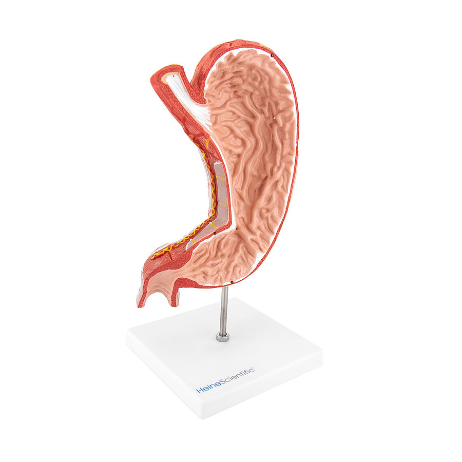 Anatomisches Modell des menschlichen Magens mit Darstellung der Magenmuskulatur. Das Magenmodell kann in 2 Teile zerlegt werden, um den inneren Aufbau des Magens zu betrachten.