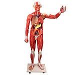 Dieses lebensgroße Modell eines Mannes zeigt nicht nur die oberflächliche Muskulatur, sondern auch die Anordnung und zum Teil den Aufbau der inneren Organe. Die Organe können größtenteils entnommen werden, einige sind zusätzlich noch einmal in mehrere Teile zerlegbar.