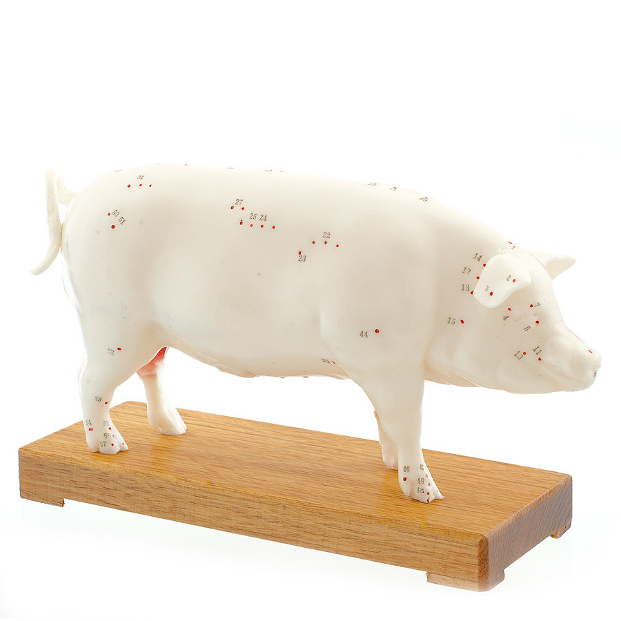 ist ein anatomisches Veterinär-Modell, das einen Überblick über die wichtigsten Akupunkturpunkte beim Schwein vermittelt und durch die halbseitige Darstellung von Teilen der Muskulatur, des Skeletts und der inneren Organe einen Zusammenhang zwischen Akupunkturpunkt und dem manipulierten Organ herstellt.