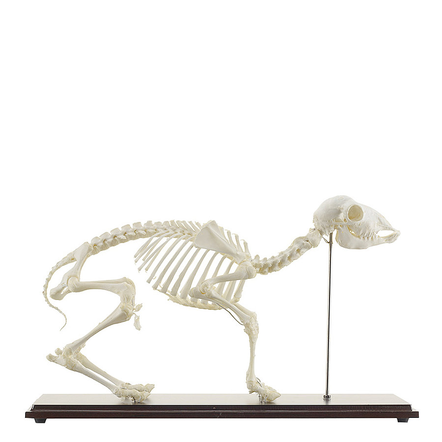 von HeineScientific ist unbeweglich auf einem Holzsockel befestigt und zur Identifizierung der einzelnen Knochen mit Nummern versehen. Diese können mithilfe des beiliegenden Dokumentes zugeordnet werden.