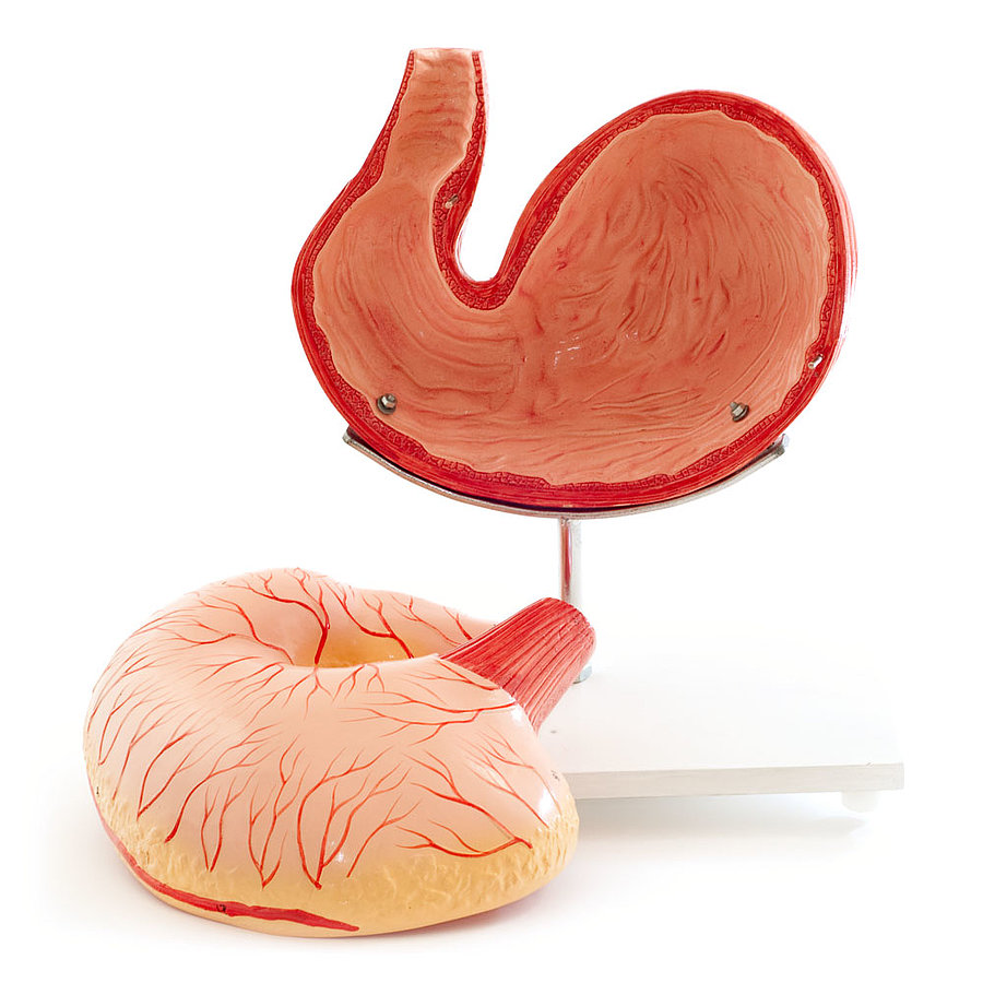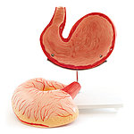Das Modell eines Hunde-Magens ist in zwei Teile zerlegbar und zeigt so nicht nur die äußere sondern auch die innere Beschaffenheit des Hundemagens.