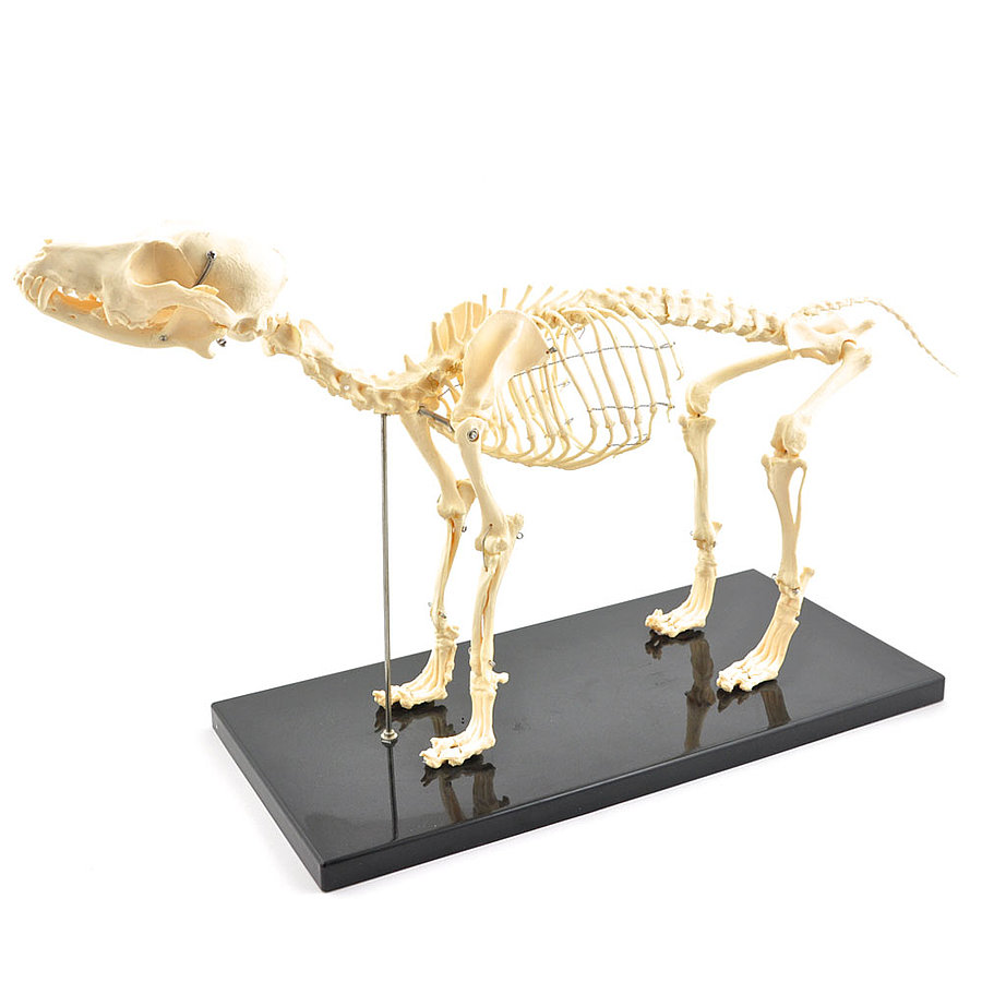 Das künstliche Hundeskelett von HeineScientific ist der Kunststoff-Abguss des Skeletts eines kleinen Hundes, wie z.B. ein Jack Russell Terrier oder Zwergpudel.