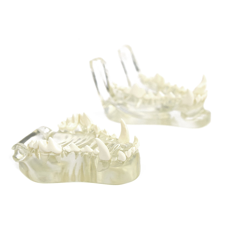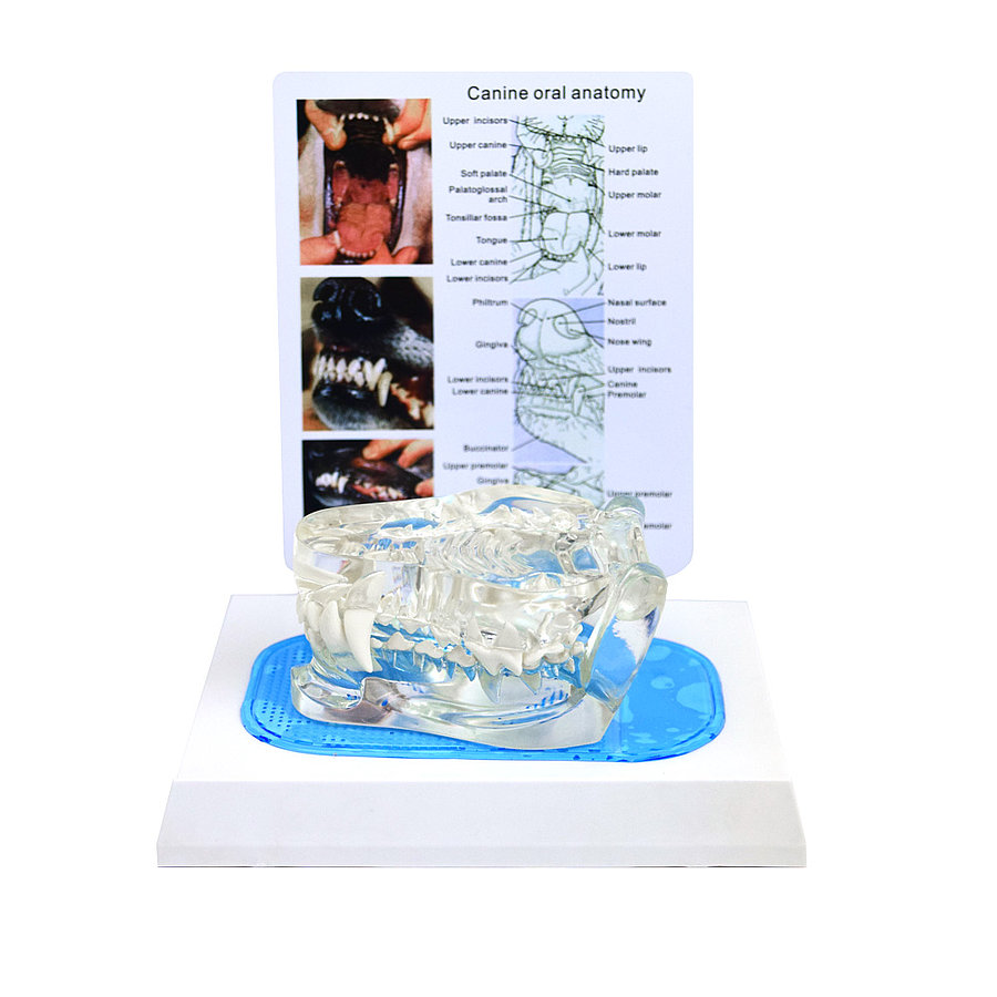 Das transparente Hundekiefer-Modell veranschaulicht den gesunden Kauapparat eines ausgewachsenen Hundes.