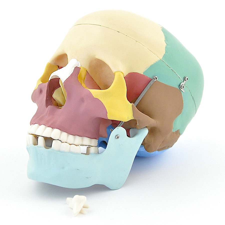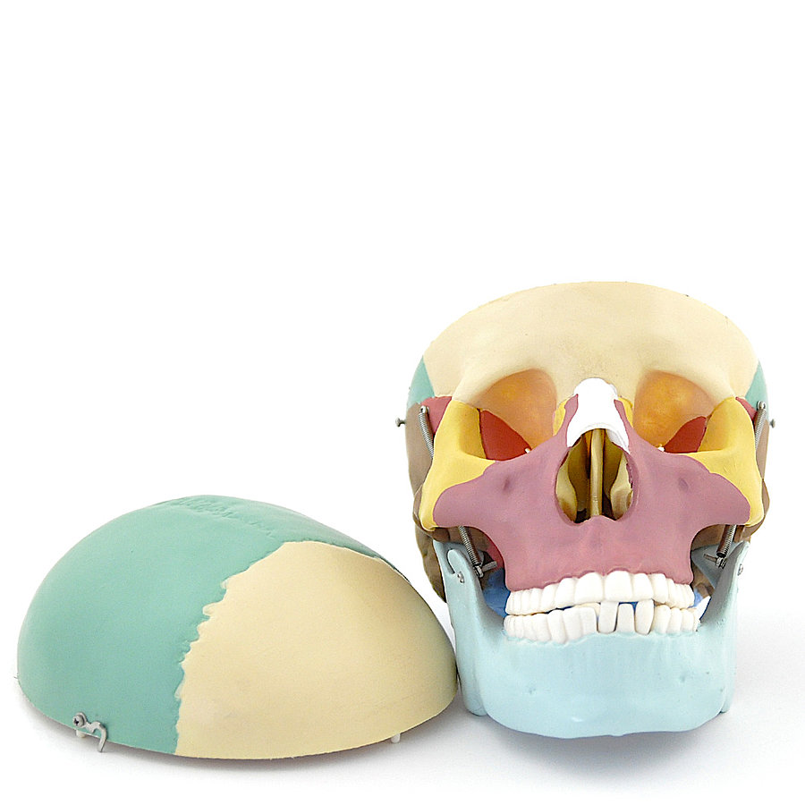 Our coloured skull model was specially designed to provide an easy method with which to learn the different bones of the skull. Each bone is colour coded, so that the shape, proportions and boundaries of the bones can be easily observed.