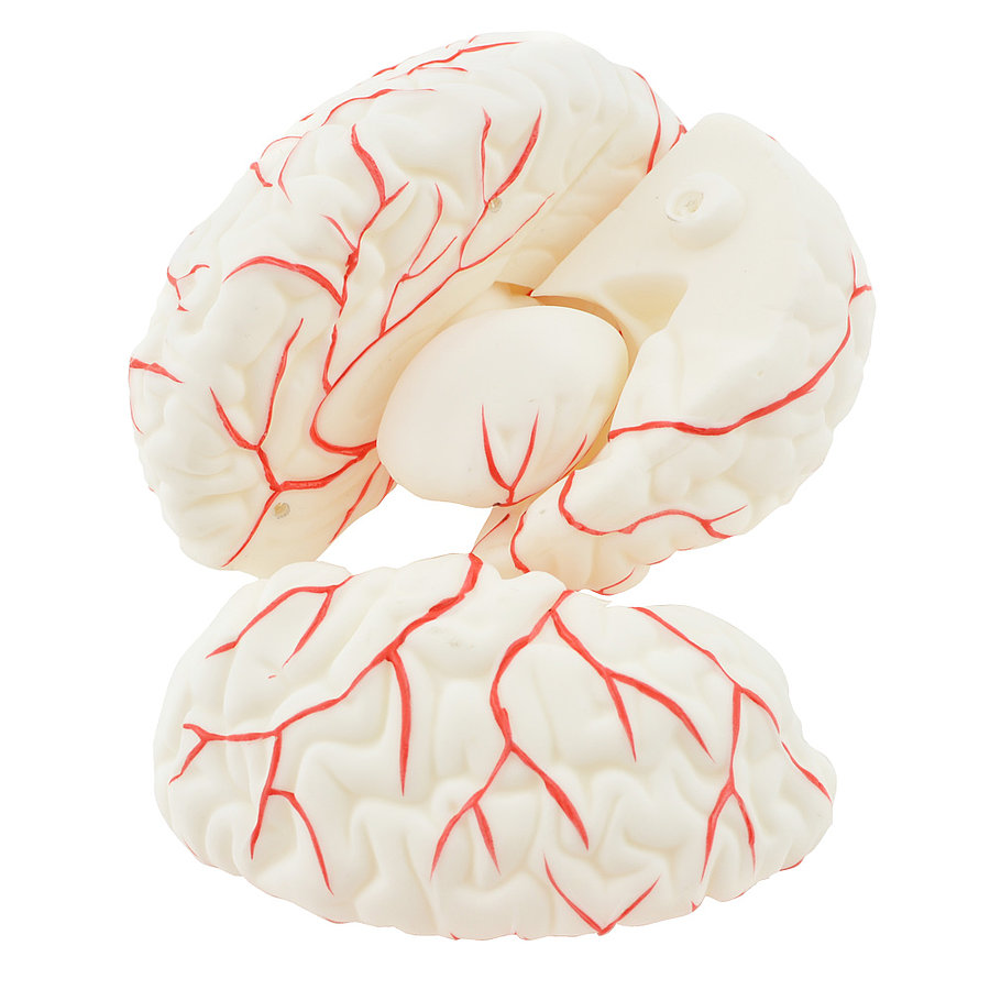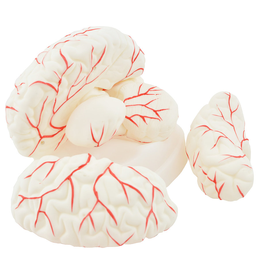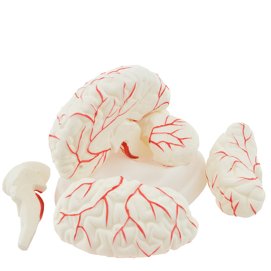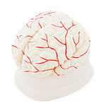 This anatomical model illustrates the arterial pathways of the human brain and shows the anatomy and proportions of the functional areas.
