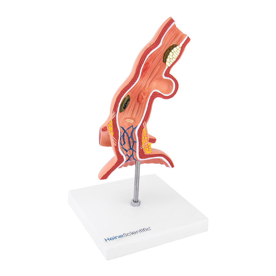 This anatomical model shows the oesophagus with typical ailments, such as a hiatus hernia or GERD.