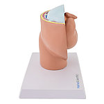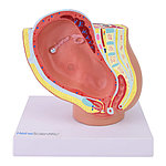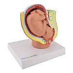 This pelvis model shows the female pelvis during the 40th week of pregnancy. The foetus is represented in a foetal position and attached to the womb with a magnet. It can be removed from the model for closer observation.