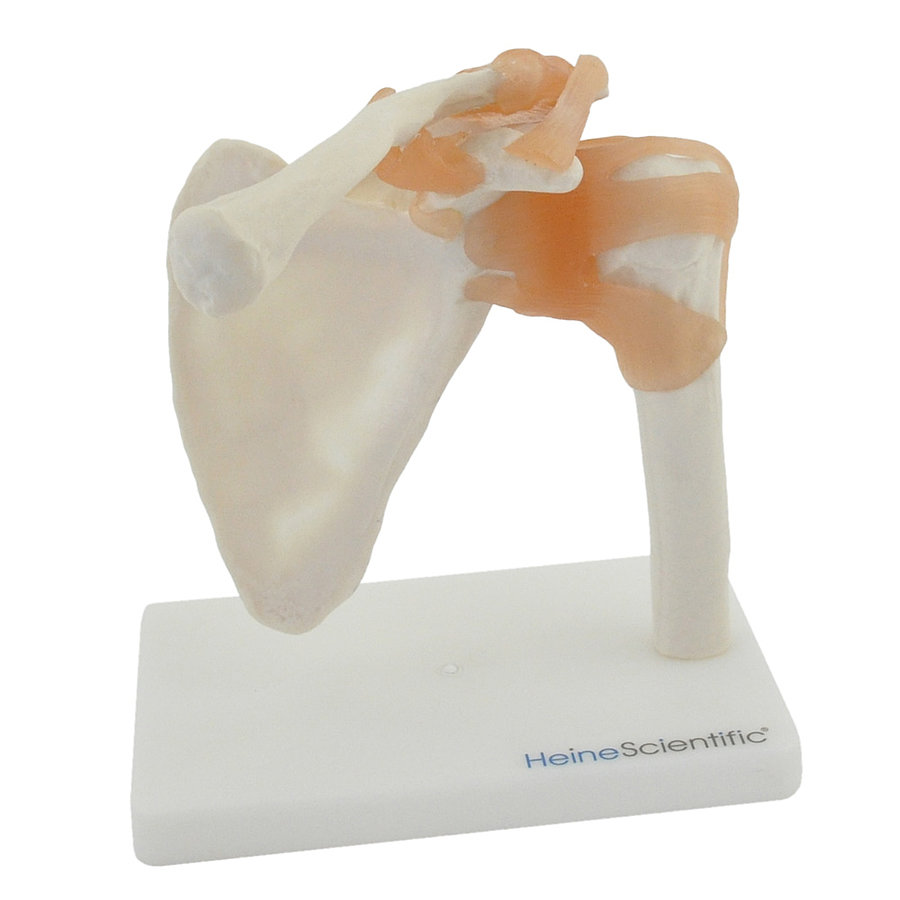 The shoulder joint model from HeineScientific shows the bony structures of the human shoulder joint and the connected associated ligaments.