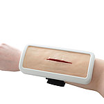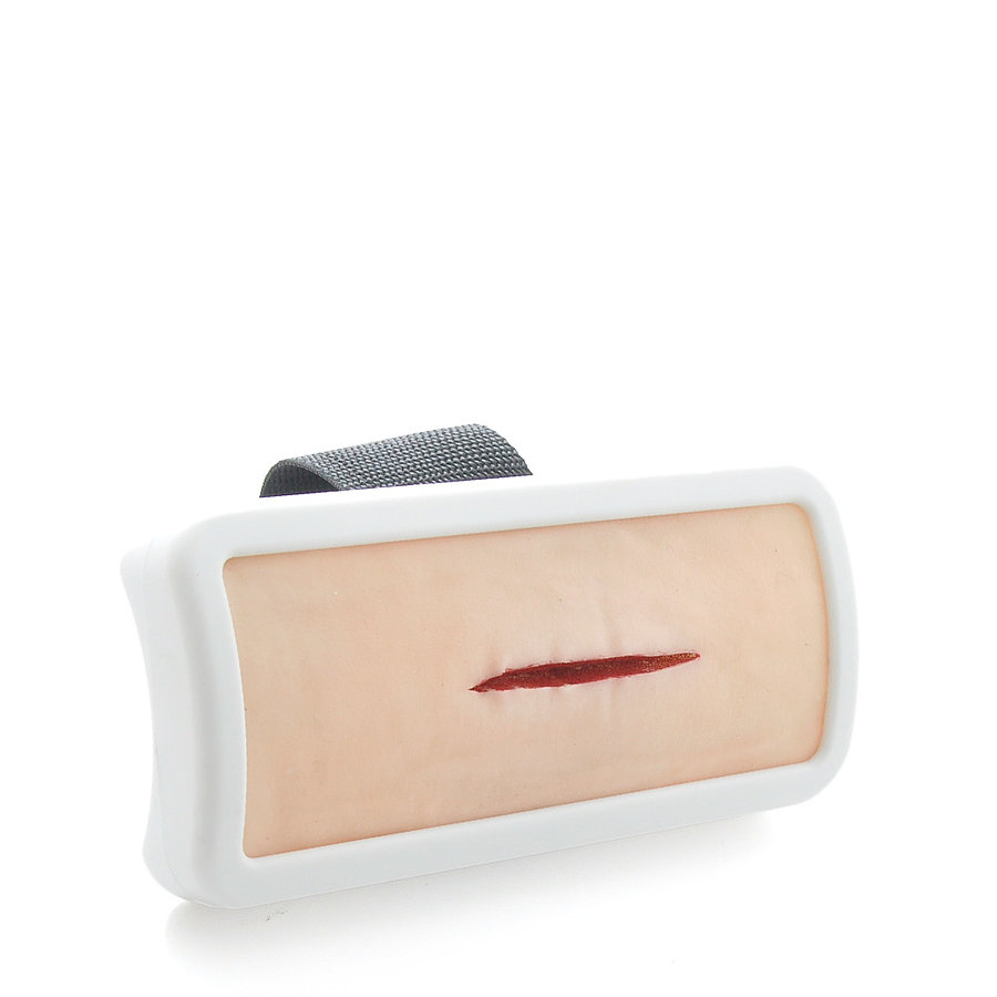 - The suture trainer features a pre-cut wound that can be sewn again and again. If necessary, additional wounds can be added.