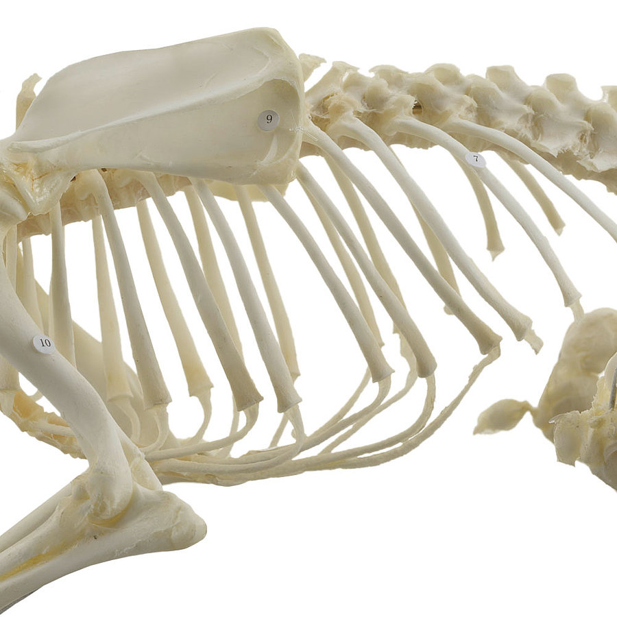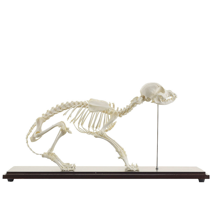 (from a dog about the size of a dwarf poodle) from HeineScientific is set apart by the use of real bones and the black wooden base on which it is mounted. For this reason, this skeleton specimen is excellent for demonstration purposes and can also be used for veterinary studies.